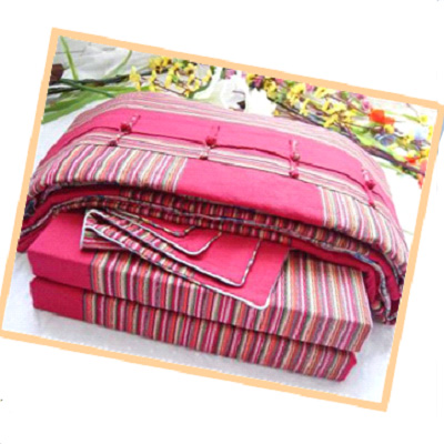 采用民间传统工艺,利用原始木质织布机纯手工加工而成,不具有任何污染。 产品比原白、全彩床单的纹理显得比较紧凑、细腻。布面平整、不易搓起、卷边、褶皱,纯棉、纯手工,抗静电,不起球,透汗性好,消除疲劳,按摩止痒 整经过程中,线所受拉力小,使得织出的布紧密,缩水率小,越用越柔软。