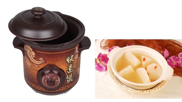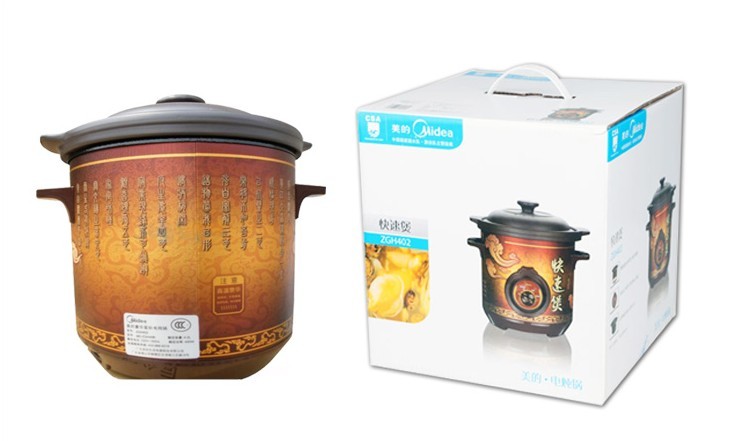 产品名称:Midea/美的 ZGH402 品牌:Midea/美的 型号:ZGH402 控制方式:机械式锅煲 材质:紫砂 锅煲功能:煲汤 煮粥 炖 焖 锅煲容量:4-5L(不含5L) 功率:400W及以上 售后服务:全国联保 预约功能:无 液晶显示:无
