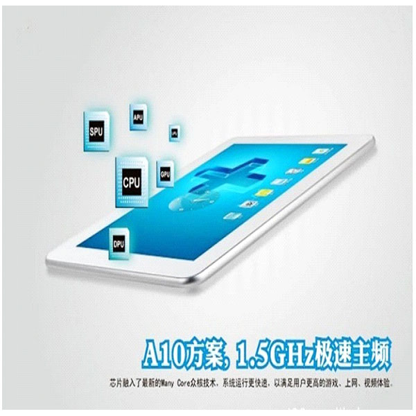 4、全志超强平板芯片A10,1.5GHz极速主频,1G DDR3内存。