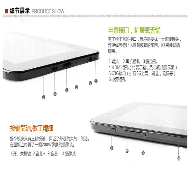 超长待机 9寸双核 10点电容屏平板电脑(白,黑)