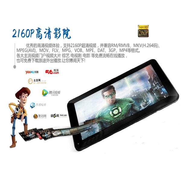 智能平板电脑(4G/8GB) 操作系统 Android4.0 处理器型号 ARM Cortex A8 芯片方案 全志A13 系统内存 512MB DDR3缓存 存储容量 4G/8GB(可选) 存储介质 闪存 存储卡 支持MicroSD(TF)卡,最大32GB 电池类型 锂电池3.7V/4000mAh 续航时间 网页浏览约6小时视频播放约6小时(关闭WiFi,耳机状态)音频播放约15小时(关闭WiFi,耳机状态,熄屏状态) 电源适配器 5V-2A DC电源适配器 屏幕尺寸 9英寸 屏幕分辨率 800480 屏幕类型 宽屏(16:9) 屏幕材质 TFT屏 触摸屏 电容式触摸屏 WIFI功能 支持802.11b/g/n无线协议 3G上网功能 支持外挂3G 视频格式 支持MKV,AVI,RM,RMVB,MP4,MOV,FLV,3GP,WMV,DAT,MPG,VOB,TS等格式 高清视频 支持1080P,19201080分辨率 音频格式 支持MP3,WMA,WAV,AAC,OGG,OGA,APE,FLAC等格式 频率响应范围 20-20000Hz 总谐波失真 0.5% 其他描述 信噪比:85dB耳机输出:(L)10mW+(R)10mW 图片浏览格式 支持JPG,JPEG,BMP,GIF,PNG等格式 电子书阅览 支持PDF,TXT,EPUB等格式 重力感应器 支持 OTG功能 支持 其他描述 支持录音,日历,模拟时钟,闹钟,计算器,以太网 USB接口 USB2.0 音频接口 耳机接口 其他接口 电源接口 扬声器 内置 菜单语言 简体中文,繁体中文,英语等多国语言 兼容操作系统 Windows 98,2000,2003,XP,Vista,Win 7,MAC 9.1及以上版本和LinuX 2.4 外形尺寸 194.5*116.2*11.8mm 包装清单 锐索 Q901(4G/8GB/16G) x1使用说明书 x1保修卡 x1合格证 x1立体声耳机 x1USB数据线 x1