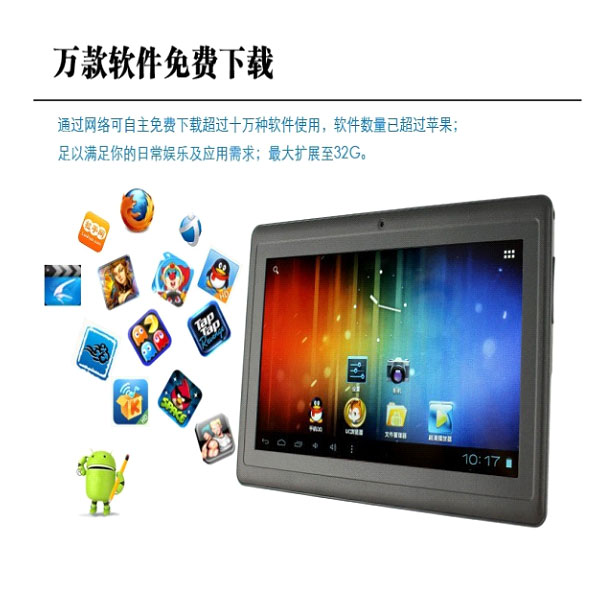 超长待机 7寸双核 5点电容屏安卓4.0平板电脑(黑,白)