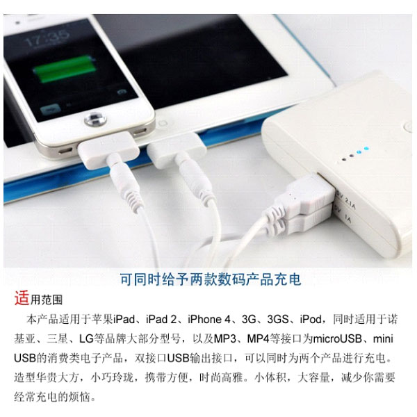 可同时充两部手机,功能强大。