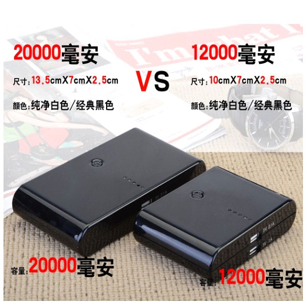 20000毫安 12000毫安 手机移动电源(黑,白)
